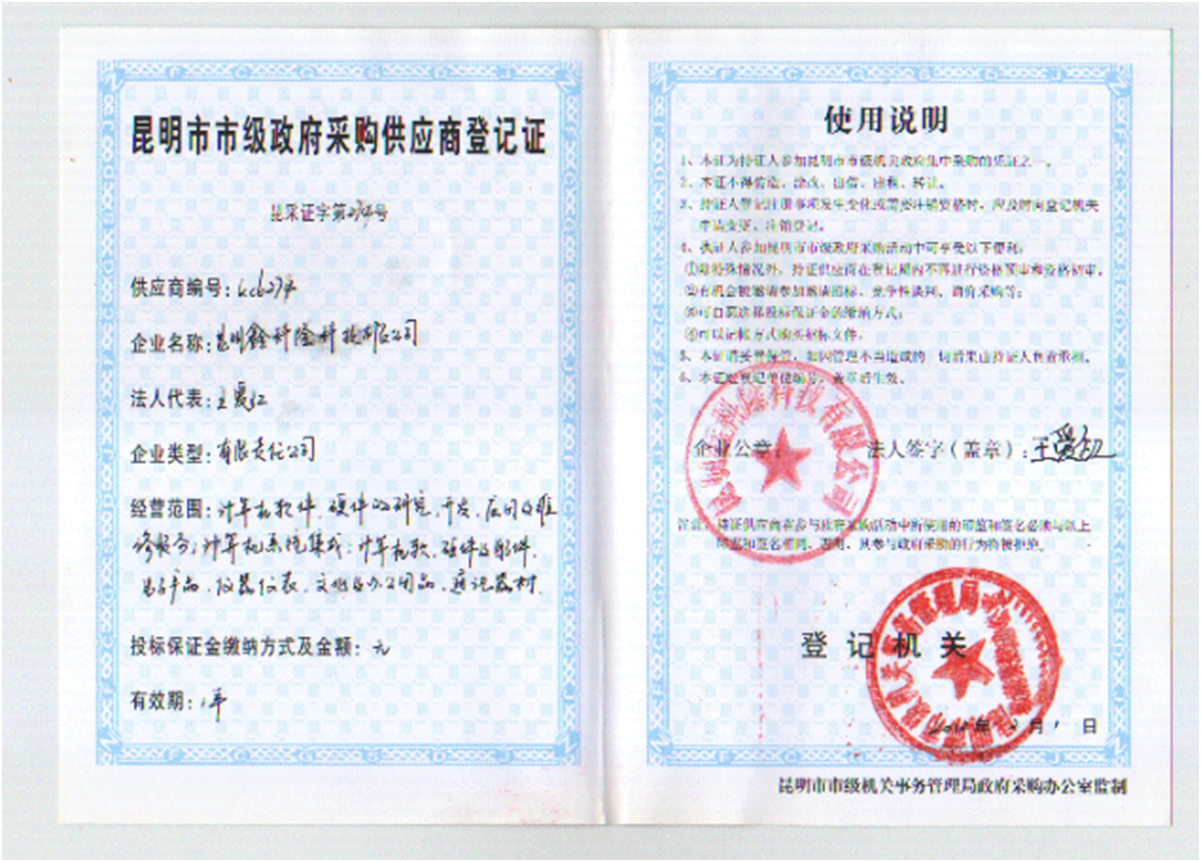 云南安全防范系统工程备案证书